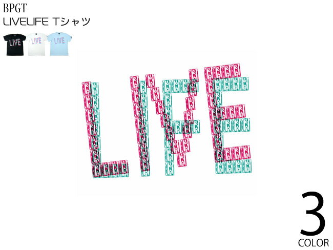 ・バックはシンプルにノープリント ・モデル=167cm Sサイズ着用 1stブランド【BPGT】シリーズ [ メンズ レディース 男女兼用 アイテム ] LIVE LIFE Tシャツ (ライトブルー)- BPGT - ライフがライブ? ライブがライフ? 動いて動いて動いてようやく始まる☆